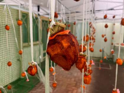 干し柿にして、約二週間。元々の大きさの半分くらいの大きさになったようです。