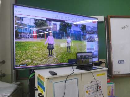 3年生では、総合的な学習の時間「梅小路の町 もりあげ隊」の学習を続けています。今回は、東京都の観光地のひとつである渋谷区の小学校と交流し、学校の様子などを話合いました。学校の校庭が芝生であることや、有名な作曲家の出身地であること、外国人の観光客が多いことなど、様々なことが分かりました。今後も交流を続け、お互いの町のよさについて話し合う予定です。