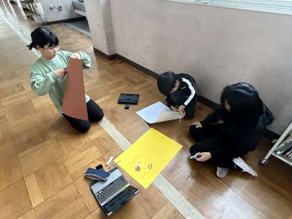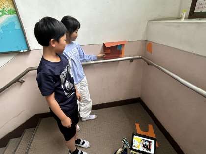 学校の身近な場所にあるいろいろな形や色。じっくり見ると、違うものに見えてくる…いつもの場所を、違う場所に変身させました。