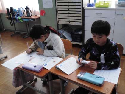 書写の時間に、日本の伝統的な文化である「年賀状」について学習しました。