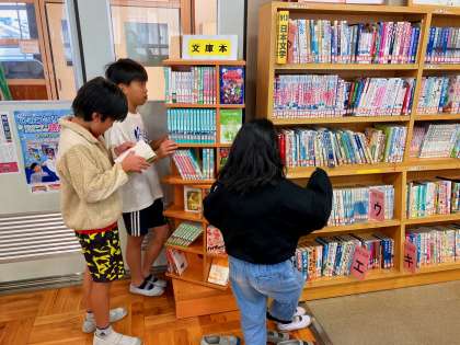 冬休み前なので、図書室で最大4冊の本を借りることができます。物語、文学作品、歴史ものなど、自分の読みたい本を探して手に取っていました。普段なかなか読まない本に挑戦しようとしている人もいました。地域の図書館を活用するのもいいですね。ぜひ、冬休みに素敵な本と出会ってくださいね。