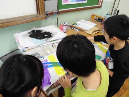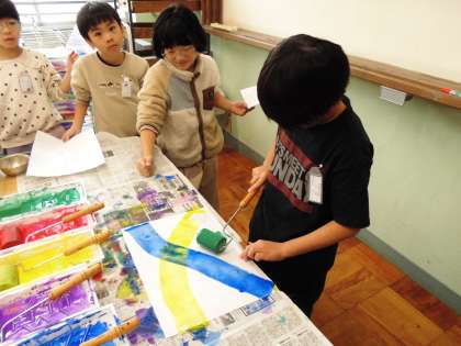 図工の時間には、「楽しくうつして」の学習を図工室で行いました。