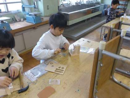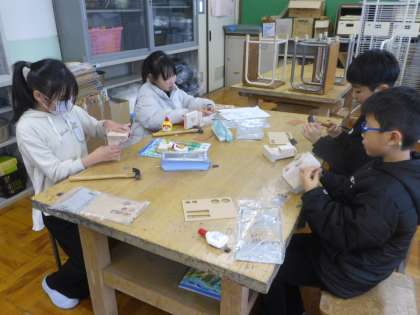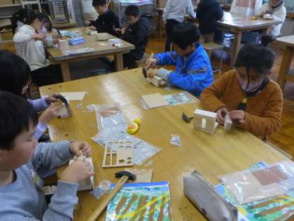 3年生では、図画工作科「トントン ドンドン くぎうって」を始めました。自分が作りたい形をイメージしながら、安全に気を付けてくぎを打っています。完成が楽しみです!