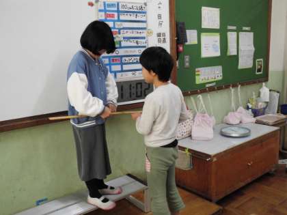 また、ものさしを使って、教室や廊下のものの長さを予想してから、測る活動もしました。