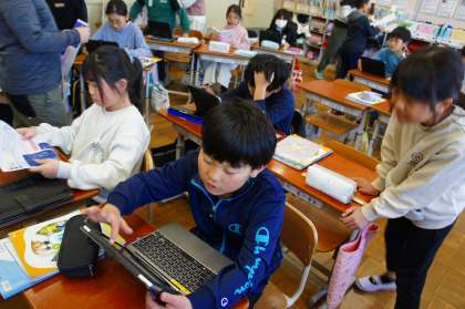 単元の学習が終わったので、たしかめの学習を行いました。プリントの問題に取り組んだ後は、ミライシードを使ってどんどん復習です。自分のペースに合わせて取り組むことができました。