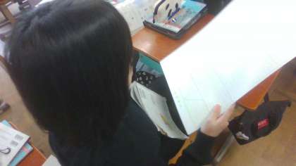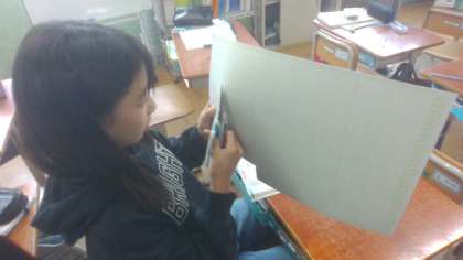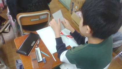 工作用紙に三角柱のてん開図をかいて、組み立てました。