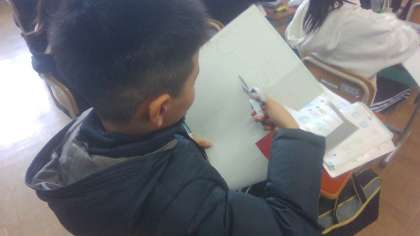 工作用紙に円柱のてん開図をかいて、組み立てました。