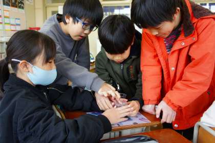 実験を通して、考えたことを確かめています。ビーカーの水が蒸発するかしないか、ラップをしたものとしていないものを見比べました。