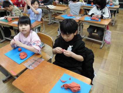 テラコッタと呼ばれる、いつも使う粘土より柔らかい粘土だったので、喜んでこねて作品を完成させていました。