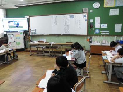 これまで読んできたことや考えてきたことも振り返り、デジタル教科書を使って馬頭琴の音色を聴きながら、ノートに自分の考えをしっかり書いていました。