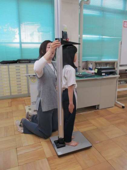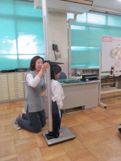 今日は、身体計測をしました。2年生と3年生は、新しく入学してきた1年生の見本になるように、姿勢をピシッと正して身長を測ることができました。体重計に乗るときには、体重の表示が止まるまで、じっとしている見本を見せていました。