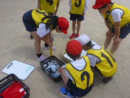 4年生では、体育科「リレー」を始めました。50メートルのタイムをもとに、自分たちの最速タイムを目指して、「テイクオーバーゾーン」の使い方をもとに、工夫して走っていきます!