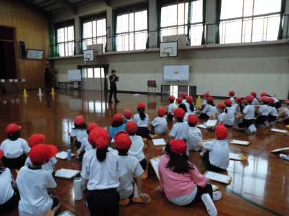3、4年生合同で体力テストを行いました。立ち幅跳びと反復横跳びの記録をはかりました。立ち幅跳びでは、より高く跳ぼうと腕を大きく振って跳んでいました。反復横跳びでは、すばやく移動し、よりよい記録がでるよう頑張りました。
