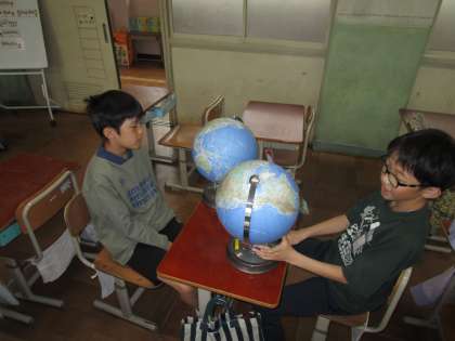 今日は、図書室で本を読んでいる子どもたちが多かったです。教室では、地球儀で国当てクイズをしたり、友達とのお喋りを楽しんだりと晴れの日とは違った楽しみ方で過ごしている姿が見られました。