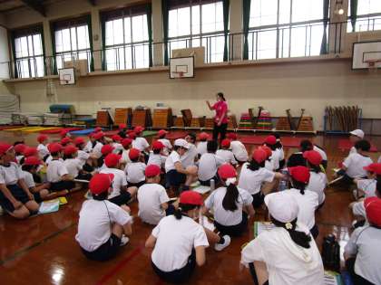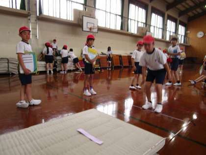 今日は、5、6年生合同で、新体力テストの4つ(長座体前屈、上体起こし、立ち幅跳び、反復横跳び)の競技を行いました。昨年の自分の結果と比べながら、一生懸命に頑張る姿が見られました。明日は、運動場で50mを計ります。自己ベストを目指し、頑張ります!