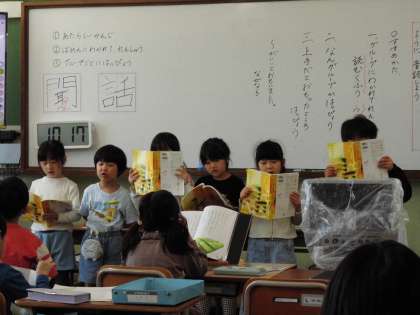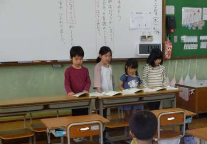 国語科で「ふきのとう」の音読発表会をしました。グループやペアで音読の工夫を考えて、「雪」や「ふきのとう」などの登場人物の様子が伝わるように音読をしました。友だちの音読のいいところも発表して伝えることができました。音読を楽しむ姿がすばらしかったです。音読の宿題では、励ましの言葉をありがとうございました。