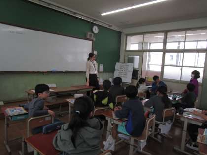 ALTの先生と一緒に好きなものや好きなことの伝え方を学びました。スペルを先生に教えてもらい英語で書く練習もしました。チャンツや歌を楽しそうに口ずさんでいる姿が印象的でした。