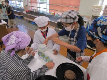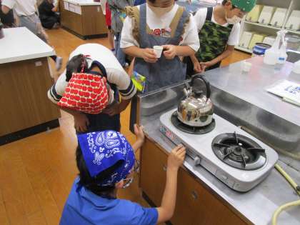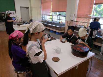 先週の2組に続き、今日は1組がお茶を入れました。家庭科室の探検をし、何がどこにあるのか分かった後、さぁスタートです!