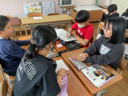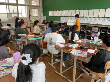 学校で使うGIGA端末の扱い方や、本や傘などの借りているものの扱い方などについて、考えを深めました。全体交流の様子です。