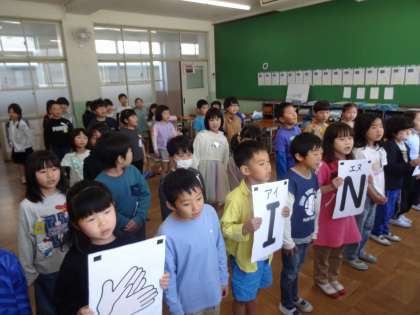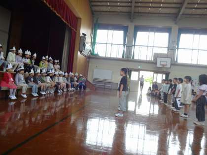 1年生を迎える会がありました。2年生は音楽科で学習した「小犬のビンゴ」の歌を歌いました。教室で練習しているときもとっても上手だったのですが、練習のときよりも、本番はもっと集中して、思い切り発表することができました。1年生に「まっていたよ!」「学校って楽しいよ」という気持ちを伝えるために頑張る姿はとても素晴らしかったです。1年生もいっしょに手拍子をしてくれてうれしかったね。