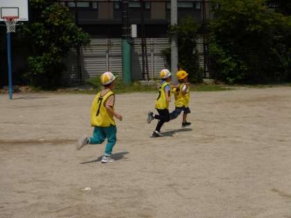 前回の学習で話し合った遊びを、グループごとにしました。ルールや鬼役をグループで相談しながら、どのグループも元気いっぱい仲良く遊んでいました。クラスを越えて、仲良しの友達をさらに増やすことができたようです。