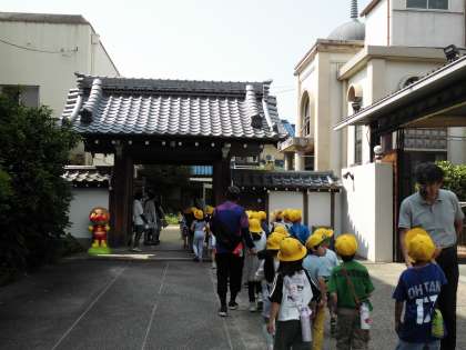 生活科の「まちをたんけん 大はっけん」の学習で、前とは違うコースで、梅小路のまちのすてきを見つけに行きました。地域の幼稚園になんと、入らせていただきました。たくさんの植物の木があって、驚く2年生。たくさんの小さい子がいて、元気に遊んでいました。遊具の大きさを見て、「小学校のものよりも小さいね。」と気づく子もいました。とってもうれしくて、ふりかえりでも幼稚園のことをたくさん書いていました。