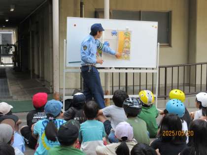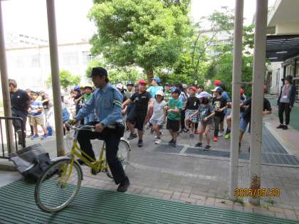 警察署の方と地域のボランティアの方にご協力いただき、自転車交通安全教室をしました。初めは、警察署の方から自転車の乗り方やルールを丁寧に教えていただきました。実際に乗るときの体と足の置く位置など、今日からも気を付けてできそうなことを知ることができました。