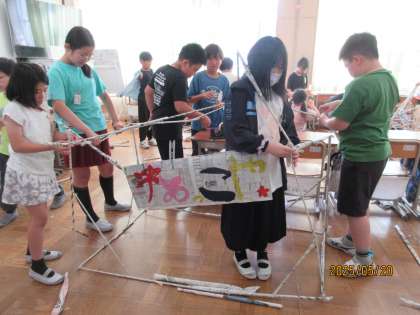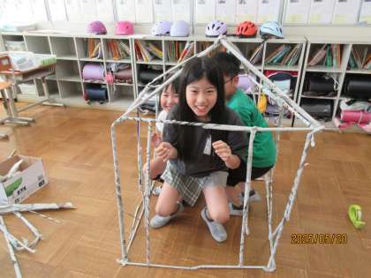 先週に引き続き、4年生の図画工作科「組んで立ててつなぐんぐん」では、建物やタワーを組み立てました。グループごとに協力して、家やタワー、車などいろいろ作り上げていました。