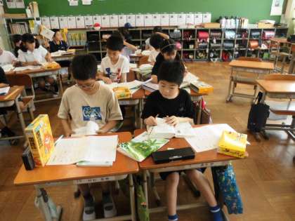 国語辞典を使い、言葉の意味を調べる学習をしました。国語辞典のつくりや使い方をじっくりと学習し、生き生きと国語辞典を開いて言葉を調べる姿が印象的でした。
