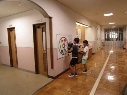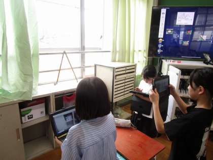 校内で見つけたアルファベットをクラスで交流しました。「角度を変えるとアルファベットが見つかった」や「大文字のOは教室内だけでも沢山あった」という感想がありました。次は小文字を探したいですね!