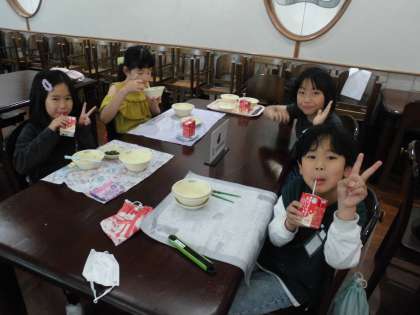楽しく学びを深めた後には、ランチルームで給食を頂きました!