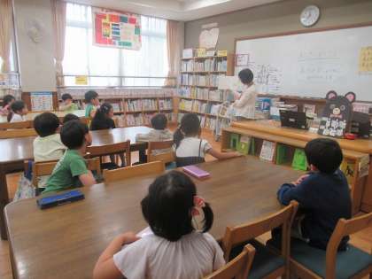 図書の先生にお世話になり、図書室で読み聞かせをしてもらいました。