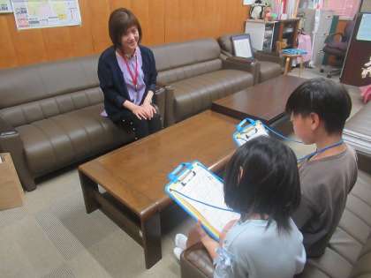生活の学習で、教職員の方と仲良くなるためにインタビューの活動をしています。