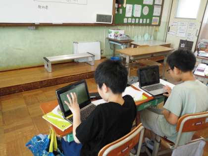 観察したたまごからどのように変化していくのかを、動画を見て調べました。調べてみると、たまごから幼虫、さなぎ、せい虫と変化していくことを知りました。予想していた変化と違った子どもたちもいて、何回も動画を見直し、学びを深めていました。