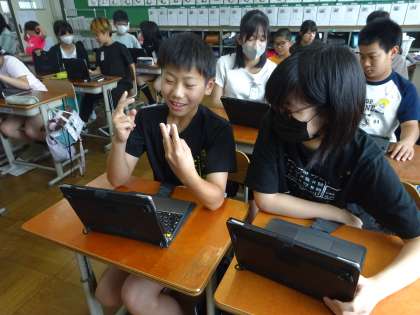 江戸時代の歌人「橘曙覧」が始めた、日常の暮らしの中の楽しみや喜びを「たのしみは」で始まり、「時」で結ぶように表した短歌。この形を借り、子どもたちも短歌を作りました。今回は、作った短歌を読み合い、友達と感想を伝え合いました。