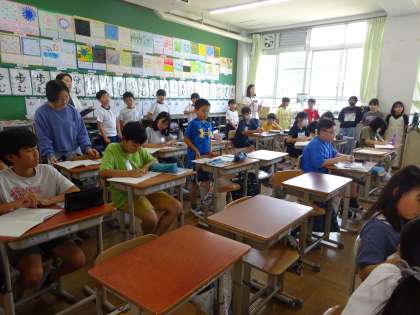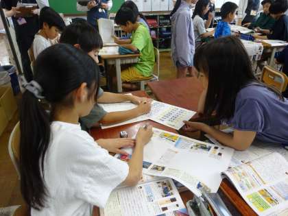 子ども司会で、子どもたち同士で学び合いながら学習を進めていくことを目指している梅小路小学校。今回は、6年生の子どもたちが授業をしている様子を5年生が見学に来ました。「6年生は10分でこんなに資料の読み取りができるんだな。」「ぼくたちもこんなふうに司会ができるようになりたいな。」など、6年生の姿が、5年生たちにいい刺激を与える機会となりました。