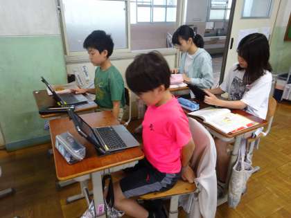 国語科の「デジタル機器と私たち」の学習では、デジタル機器と付き合うために、気になることを調べ、提案する文章を書きます。今回は、グループで話し合いながら学習を進めていきます。まずは、どんなテーマにするか、情報を集めながら考えました。