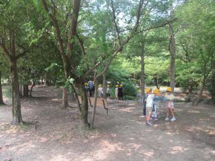 「この石、触るととても熱い!」「もみじの葉が、お日さまの光に当たってキラキラしている!」「暑い場所が多いけど、この場所は涼しいよ!」など、様々なことに気づいていました。