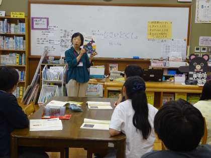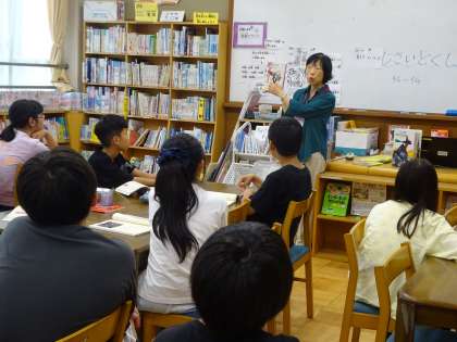 「私と本」の学習では、テーマに着目して読み広げ、ブックトークをします。今回は、図書館司書の先生に「好きということ」というテーマでブックトークをしてもらいました。これからテーマを決め、ブックトークの準備を進めていきます。
