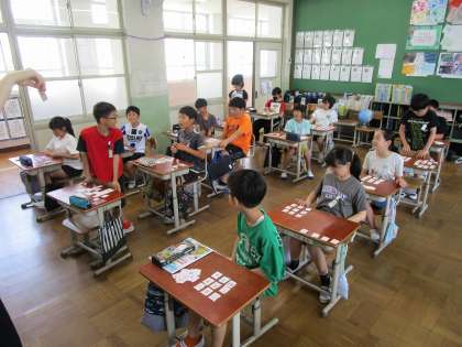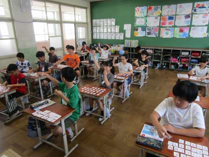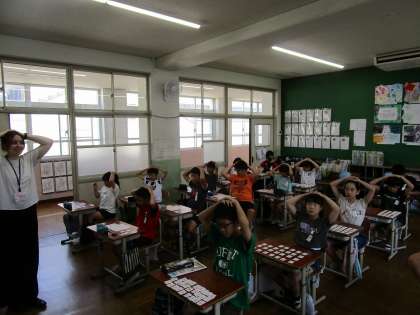 1学期最後のALTとの学習でした。SheとHeに気を付けて文章を書いたり、「Who is this ?」クイズに答えたりしました。また授業の最後にALTの発音を聞いて、正しくアルファベットを選ぶ活動やアルファベットビンゴを楽しみました。