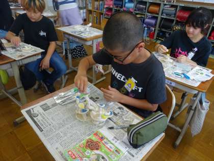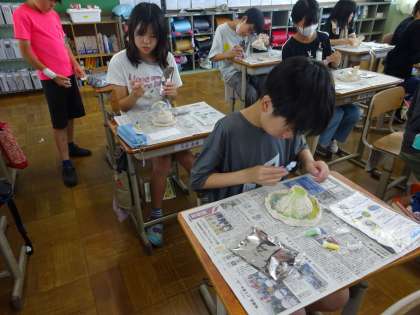 図画工作科では、「水の流れ 水の形」の学習をしました。水から想像を膨らませて、水を感じる作品を作りました。いろいろな水のイメージがあって、素敵な作品がたくさん出来上がりました。