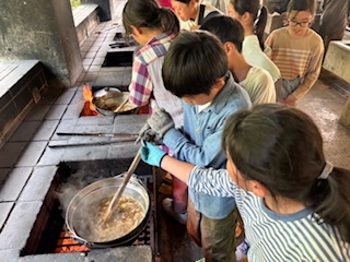 野外炊事の様子です