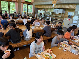 朝のつどいから朝食、本日最初のプログラム、冒険の森のアスレチックです
