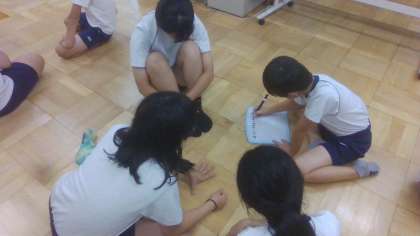 もし運動場で誰かが大けがをしたら、また、教室で大けがをしたら、自分はどのように行動するのか、グループワークで考えました。