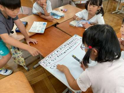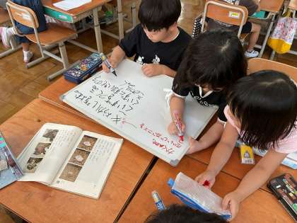 「うみのかくれんぼ」の学習で、どんな活動をすればかくれんぼ名人になれるかを話し合いました。