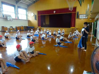 フラッグの基本動作を学んだり、みんなで動きを合わせる練習をしたりしています。
