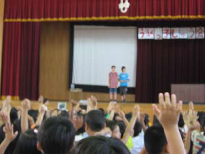 9月3日 8:40〜図書委員会による「梅っ子集会」が行われました。低学年・中学年・高学年の向けの本の紹介のプレゼンや図書室の使い方の寸劇など表現の工夫をして全校のみなさんに発信しました。「紹介してくれた本を読んでみたいな」「図書室にもっと行こう」など声が聞かれました。読書の秋です。じっくりと本に向かう時間をもちましょう。