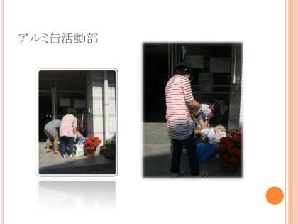 第1回目のアルミ缶回収日でした。大きな袋いっぱいもってきていただきました。