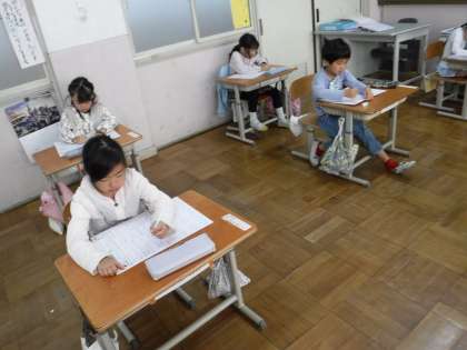 小学校で初めての漢字テストに挑戦しました。どの子も集中して、一生懸命頑張っていました!