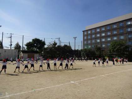 体育学習発表会に向けて、リレーあそびとリズムダンスの練習をしました。1年生のときにはコーン一つの折り返しリレーでしたが、2年生では二つのコーンを折り返し、バトンゾーンでバトンを渡します。チームでバトンを渡す位置を工夫したり、走順を考えたりして頑張って取り組んでいます。リズムダンスでは、2年生の「元気」「笑顔」を「みんなで」表現します。本番もがんばろうね!